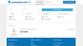 På första sidan hittar du hela sök arsenalen där du kan filtrera efter sökord, ort, kategori och annonstyp. För att lägga in en annons fyller man i formuläret under "Lägg in annons".